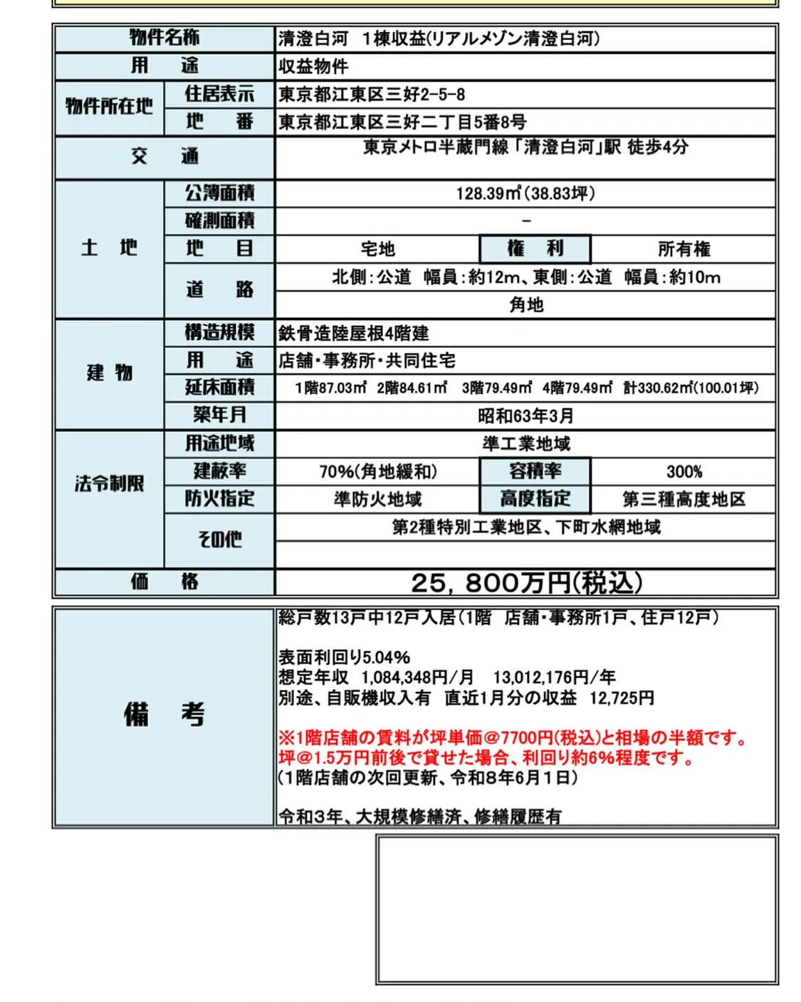 【江東区三好(清澄白河)未公開 1棟収益 】